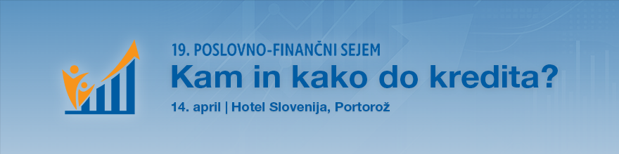 v torek, 14. aprila, bo v Portorožu potekal 19. Poslovno-finančni sejem z naslovom Kam in kako do kredita? Strokovnjaki finančne stroke bodo osvetlili, kako na finance podjetja gledajo lastnik, direktor, zaposleni in upniki ter kako jih presoja banka. VLJUDNO VABLJENI!